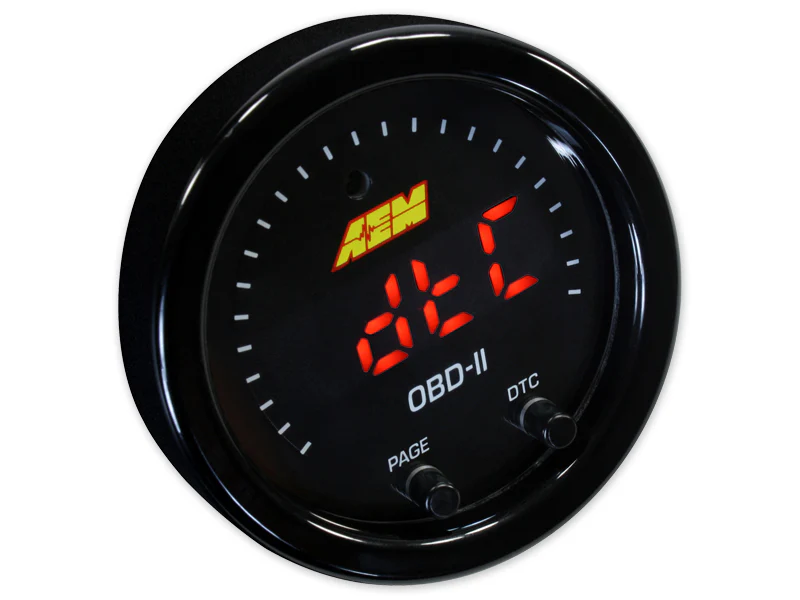 AEM’s X-Series OBDII gauge (PN 30-0311) puts multiple channels of data at your fingertips by reading the CAN bus stream of your vehicle’s OBD port and transmitting those channels to the gauge display. It reads Diagnostic Trouble Codes (DTCs) and gives you the ability to clear codes. Wiring is as simple as connecting the gauge to your vehicle’s OBDII port using the supplied connector! Because the X-Series OBDII gauge reads OBDII parameters transmitted through a vehicle’s CAN datastream, it will only work on 2008+ model year vehicles.