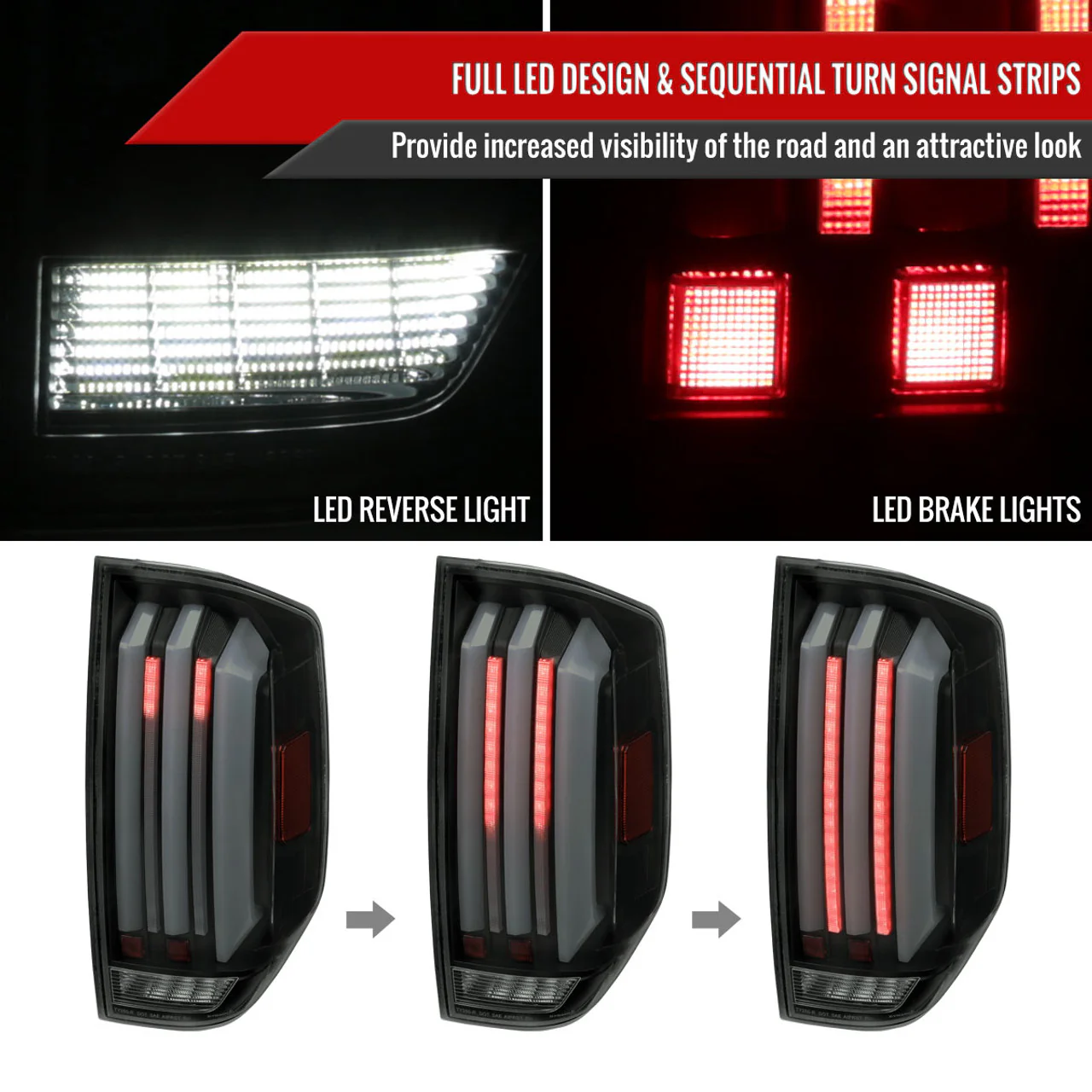 Complete LED Integration: Includes LED bulbs for turn signals, brake lights, and reverse lights, ensuring bright and efficient illumination.