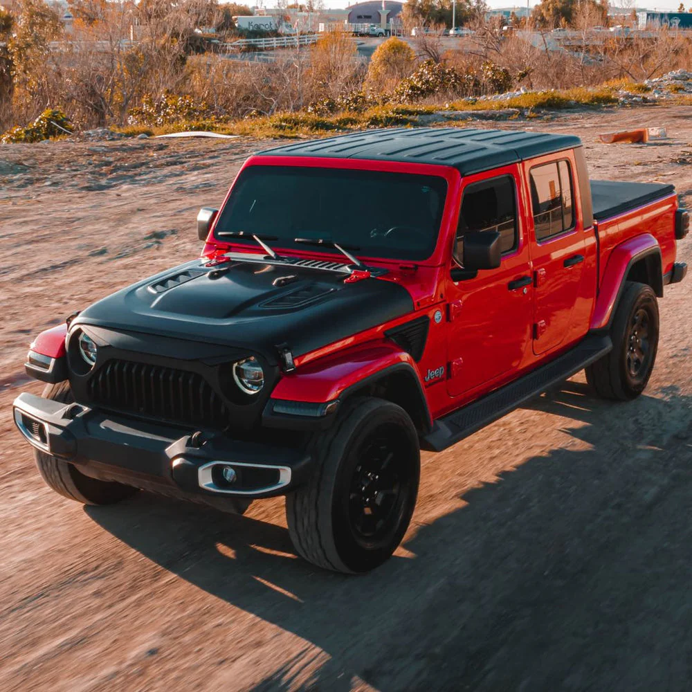 Upgrade your Jeep Wrangler JL or Gladiator JT with our 10th Anniversary Hood, meticulously designed to meet stringent quality standards. Constructed from top-tier steel/metal, this hood effortlessly integrates into your vehicle, utilizing existing mounting holes for a straightforward installation—no drilling required. Benefit from superior ventilation that enhances engine cooling, courtesy of a genuine open-air hood scoop and strategically positioned side vents. Our commitment to high quality is evident in every detail, ensuring a seamless replacement for your original hood. Elevate both style and performance with this meticulously crafted hood that brings a touch of innovation to your off-road adventures.